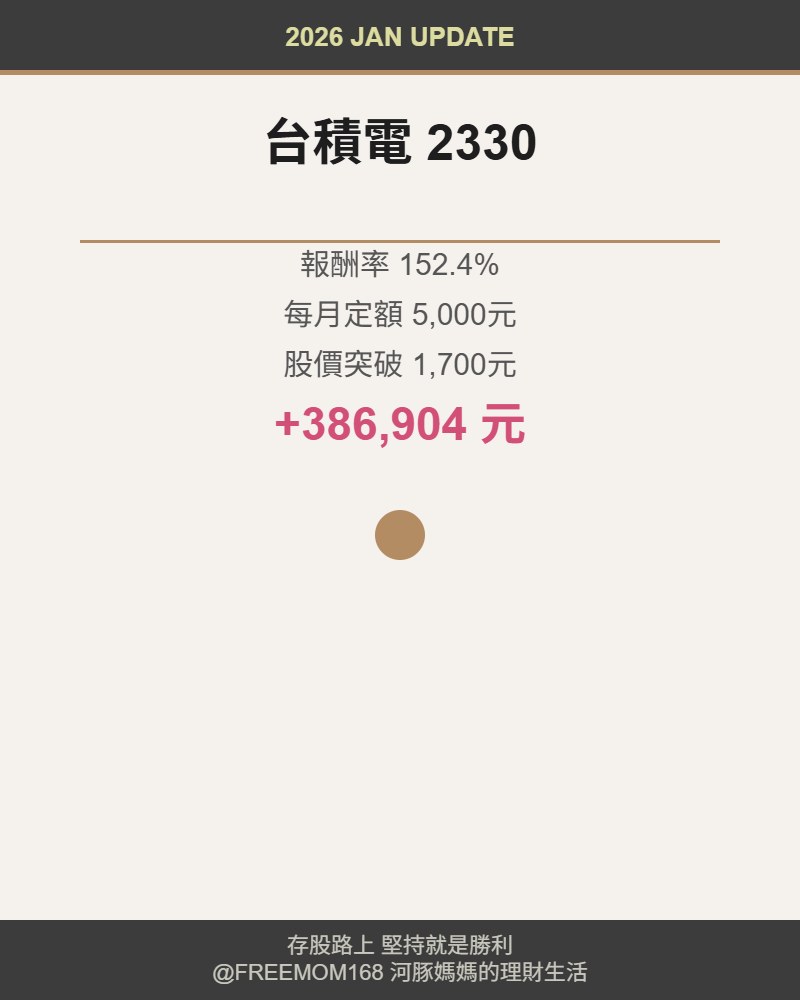寶貝們,河豚媽今天要來分享最新的台積電存股成績!