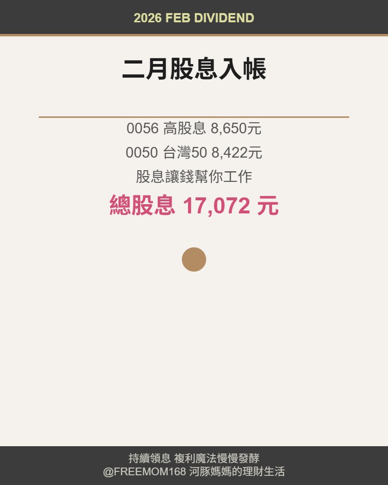 二月股息|領到17,072元